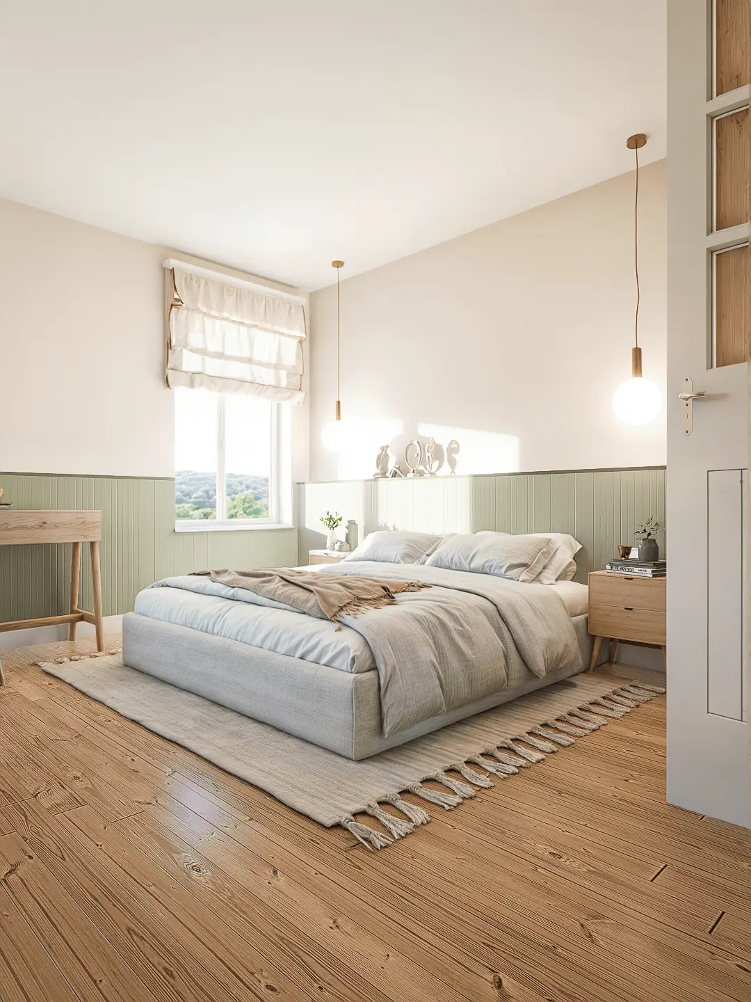 Suurtest akendest voolab sisse rohkelt loomulikku valgust, rõhutades ruumi avarust. Stiilsed detailid, nagu rippvalgustid ja dekoratiivsed elemendid, toovad ruumi soojust ja isikupära. Magamistuba ja vannituba on kujundatud minimalistlikult, pakkudes mugavust ja modernset esteetikat.
